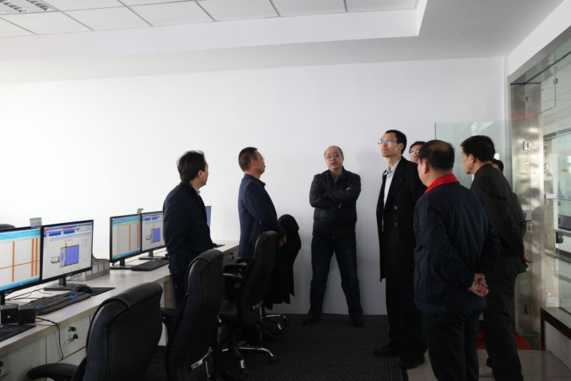 The group visited R&D center, remote quality control, big data platform, and trial production center. Director Chang Fushan demonstrated remote calibration and 80+ patents, highly praised by leaders.
